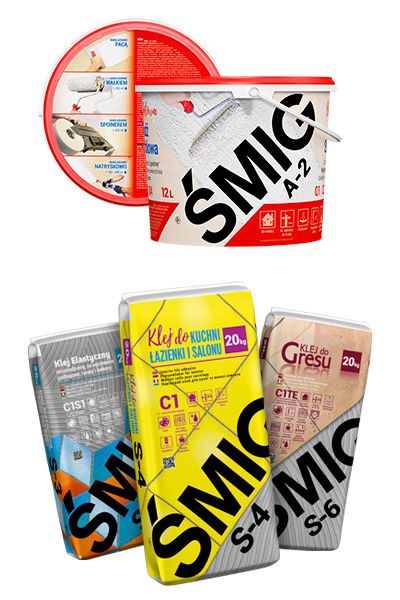 Od niedawna marka ŚMIG z wielką radością powiększyła swoją ofertę produktów z zakresu chemii budowlanej o zupełnie nowo opracowane kleje do wszelkiego rodzaju płytek, oparte na najbardziej powszechnym w całej branży budowlanej spoiwie, czyli cemencie. Kleje cementowe, które wprowadzamy do oferty to produkty na najwyższym poziomie przeznaczone do przyklejania wszelkiego rodzaju płytek czyli glazury, terakoty, gresu, kamienia dekoracyjnego, płytek dekoracyjnych wykonanych zarówno z gipsu jak i z betonu. Wszystkie nowo opracowane receptury zgodnie z naszą stałą praktyką poddaliśmy szczegółowej atestacji i certyfikacji, tak by produkty były zgodne ze wszystkimi wytycznymi unii europejskiej dotyczącymi tej części branży materiałów budowlanych oraz posiadały atesty higieniczne Narodowego Instytutu Zdrowia Publicznego.